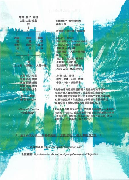 本次前綴資料含正反兩面合藏要義注說以及六張合藏舞踏譜。除了此頁內文,各張圖譜皆在合藏FB社團發布過,專屬貼文連結為:https://www.facebook.com/groups/samyakbutohgarden/permalink/890584308895393/ 此頁底下與FB貼文兩邊留言處都請寫下任何問題,感想,包括反駁,糾錯。資料討論以外的聯絡方式在自體/合藏。